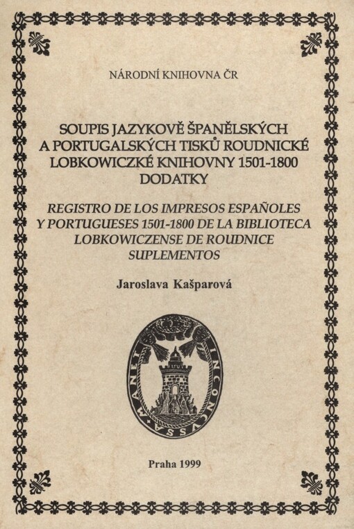 Katalog koncipovaný jako dodatky k Soupisu španělských tisků bývalé zámecké knihovny v Roudnici nad Labem nyní deponovaných ve Státní knihovně ČSR v Praze Oldřicha Kašpara (Praha 1983) přináší abecedně řazený popis dodatečně dohledaných 94 hispanik a portugalik z fondu lobkowiczké knihovny, která byla v roce 1992 restituována a dnes je uložena na zámku v Nelahozevsi.