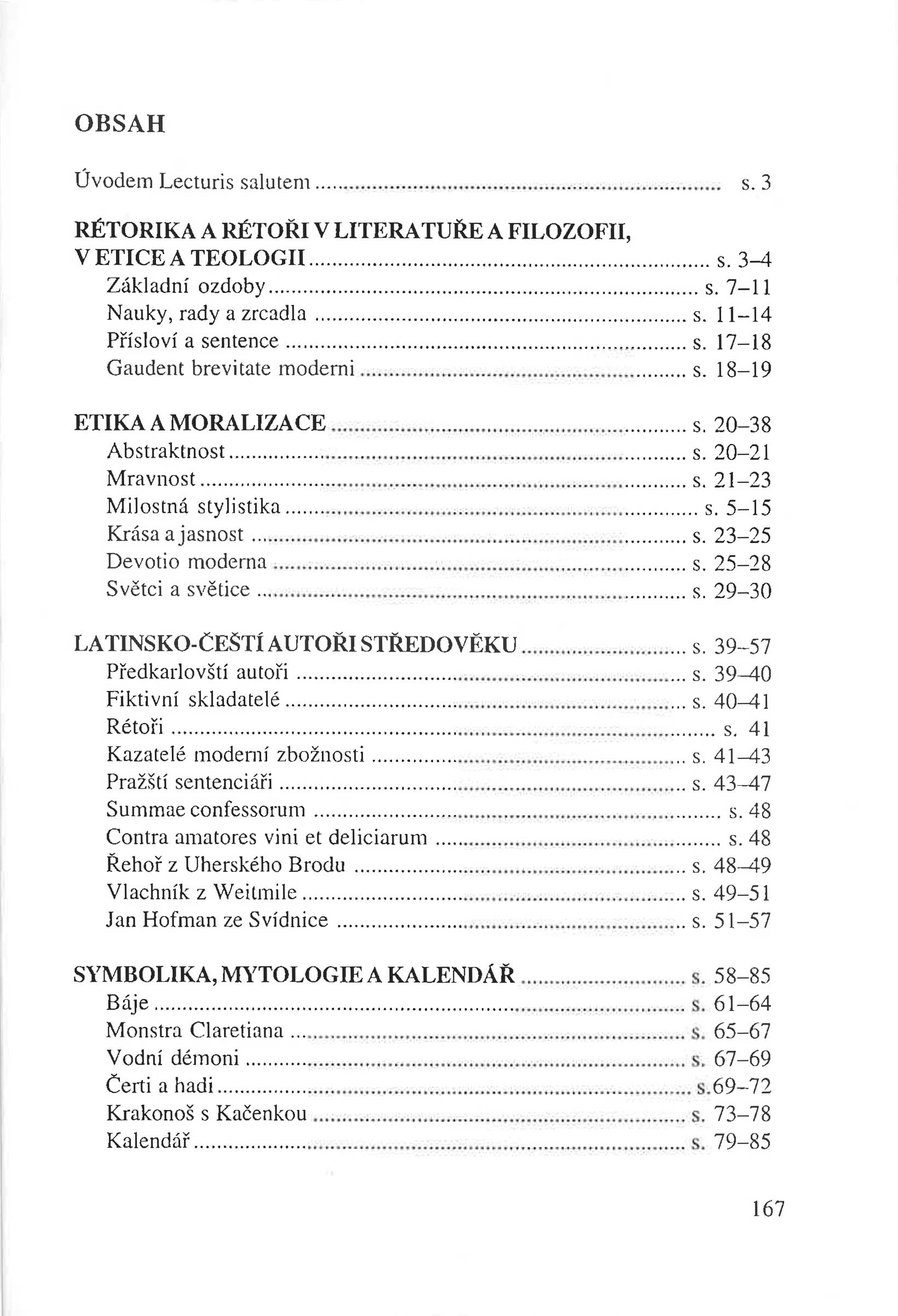 Výběr jednotlivých svědectví v latině a češtině, jak je autor vyexcerpoval z bohemikálních pramenů 14. a 15. století, částečně přeložil, okomentoval a pospojoval do tematických celků s cílem osvětlit „myšlenkové proudy latinsko-českého středověku“.